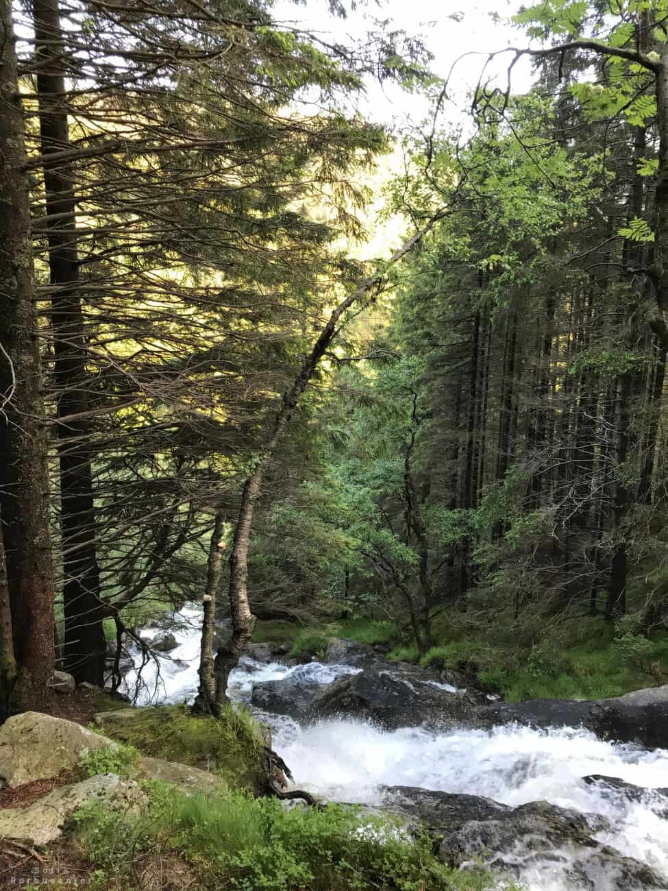 Forest trail with a river in Bergen.