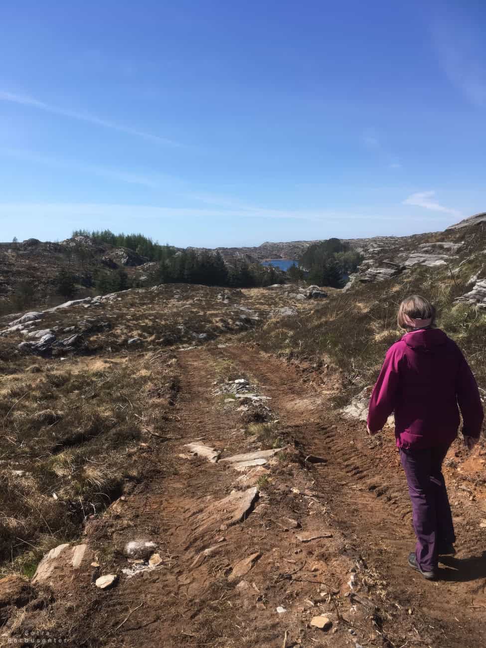 Person walking on a rocky hiking trail in Sotra.