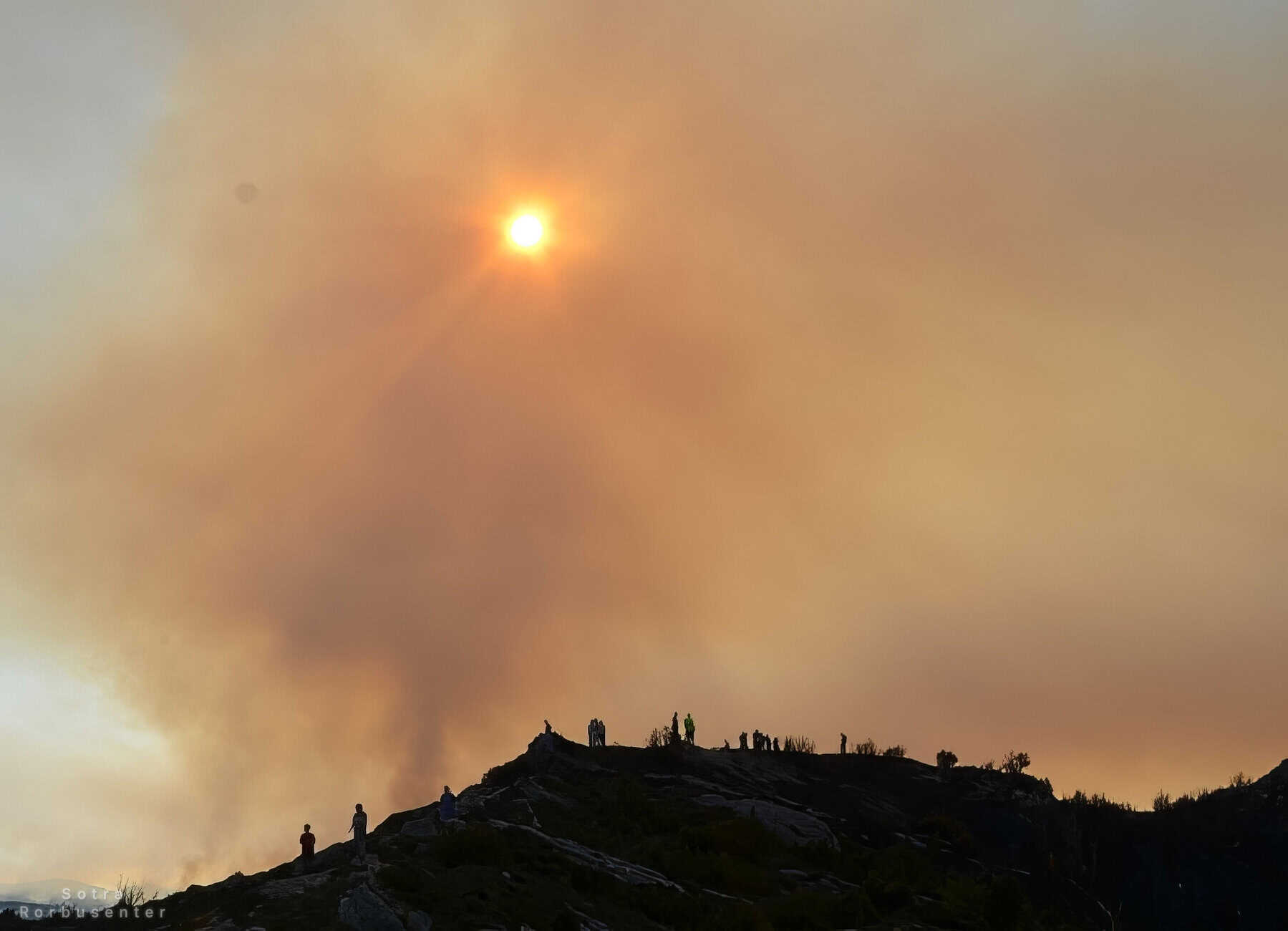 Sunset over a mountain ridge in Sotra during a hike.