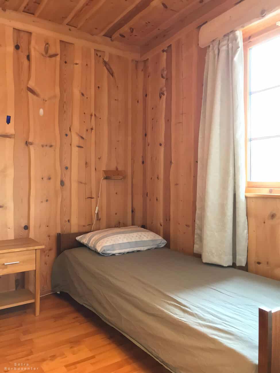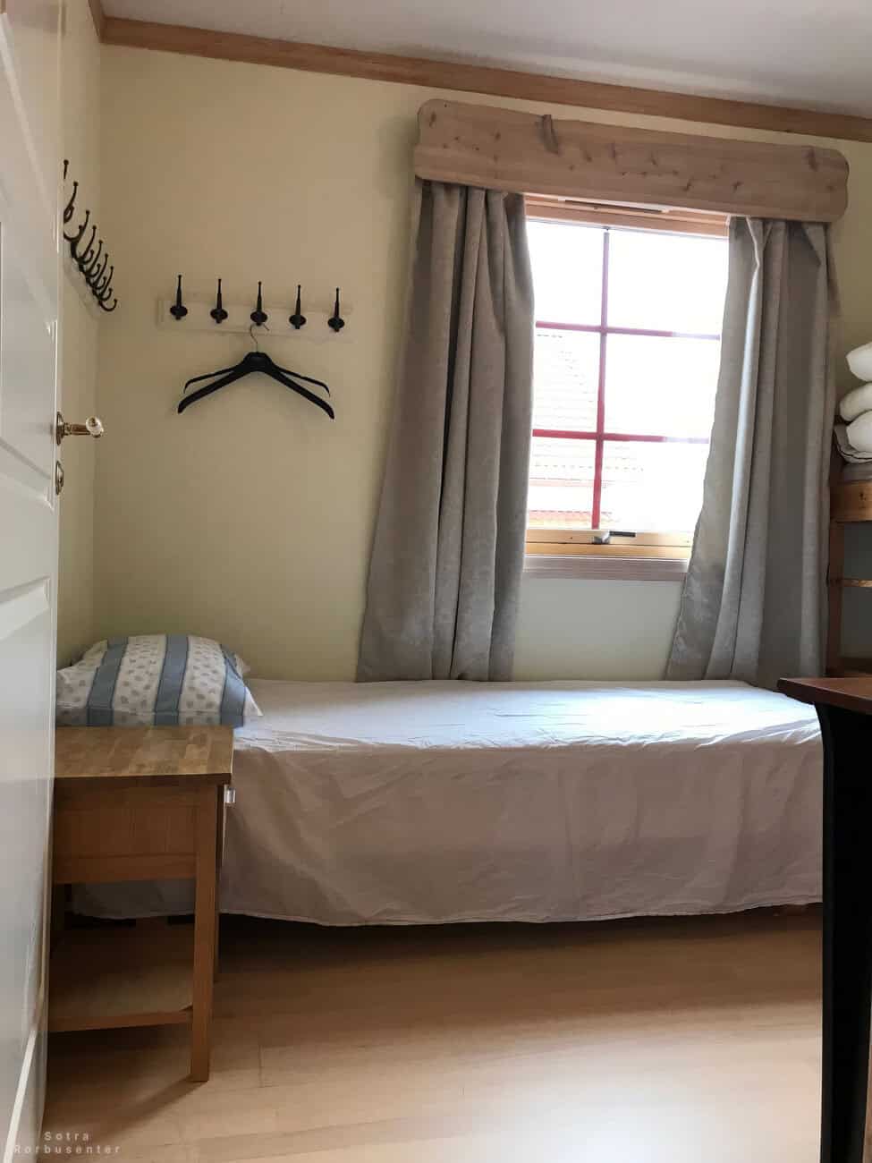 Bedroom with single bed, bunk bed, and window.