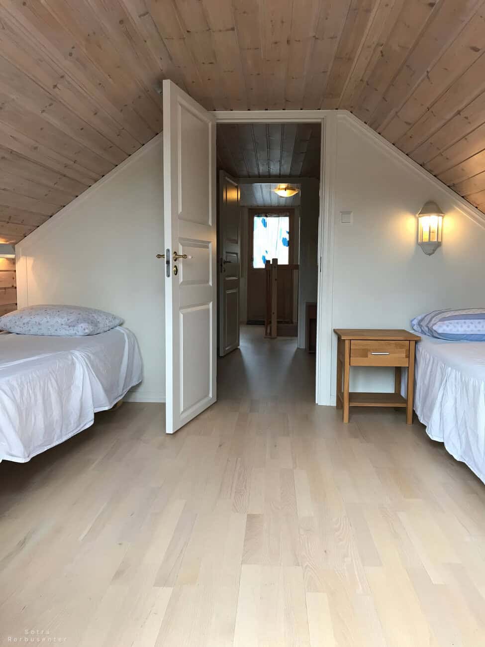 Loft bedroom with twin beds.